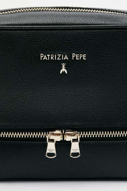 Lettering Patrizia Pepe in metallo sul davanti; chiusura del "vanity case" con doppia zip a scorrimento