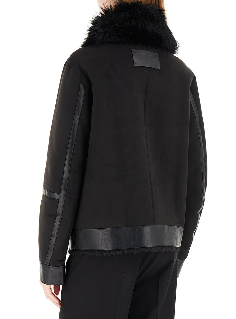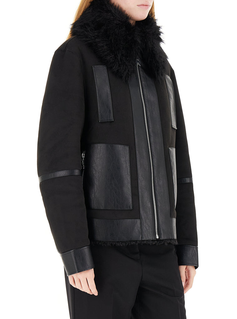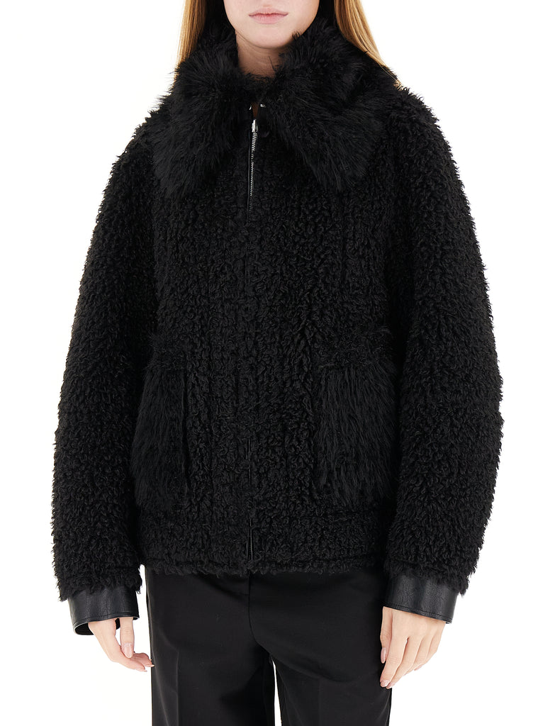 Giubbotto stile biker dal design reversibile con zip: da un lato è soffice con collo morbido e dettagli in tessuto spalmato che valorizzano maniche e busto. Girato, è un capospalla fluffy, avvolgente e voluminoso, con ampie tasche aperte. Sofisticato e funzionale, eleva look day to night.
