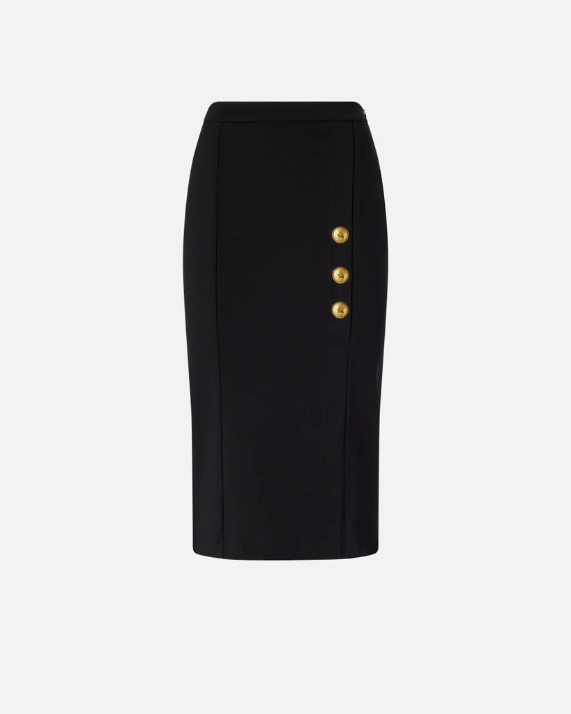 PINKO - GIARDINIERA gonna pencil punto stoffa con bottoni oro