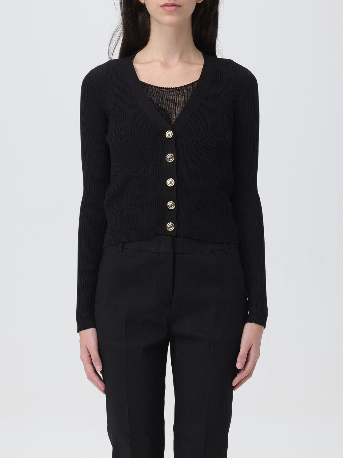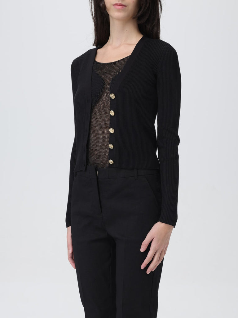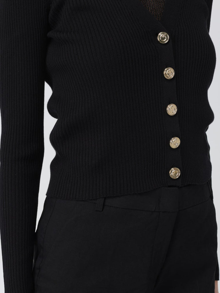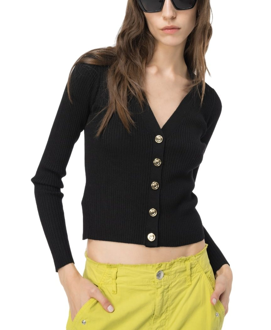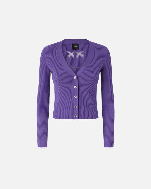 Cardigan a costine con scollo a V in pura lana merino, estremamente versatile e leggera. L'iconico logo Love Birds è protagonista della parte posteriore sotto forma di intarsio in trasparenza lavorato con tecnica dévoré che esprime appieno il DNA del brand. Il capo è stato sottoposto a prove di finissaggio per ridurre al minimo la possibile formazione di pilling, garantendo una maggiore morbidezza e durabilità del tessuto.Filato Esterno: LANA 77% NYLON 17% POLIESTERE 6%
