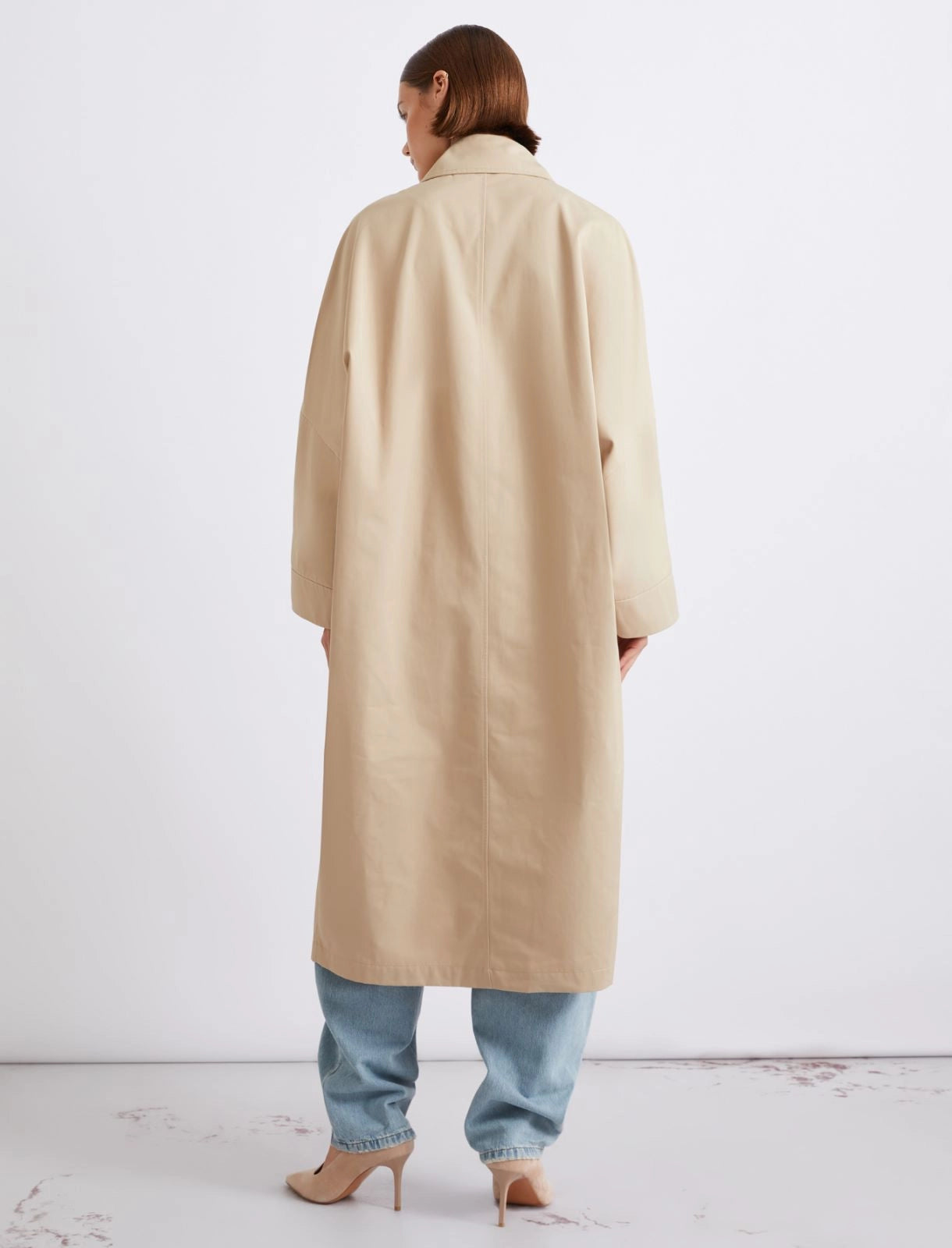 Rimandi british e attrazione fatale per nuove forme: il trench esplora volumi ampi e linee destrutturate, restando fedele alla riconoscibilità del beige tradizionale.