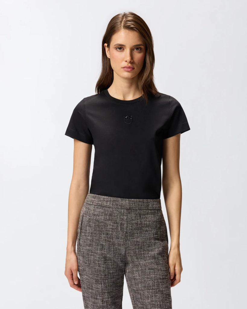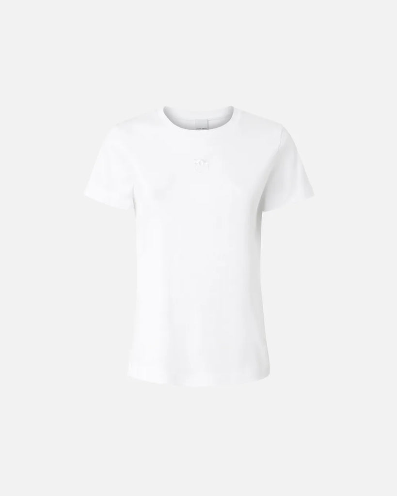 T-shirt da donna a maniche corte in jersey di cotone effetto old wash con logo Love Birds effetto ricamato davanti. Questa t-shirt rappresenta un vero e proprio passepartout in puro stile PINKO: perfetta da indossare in qualunque occasione, dalle più formali alle più sporty, aggiungendo un tocco femminile e iconico.