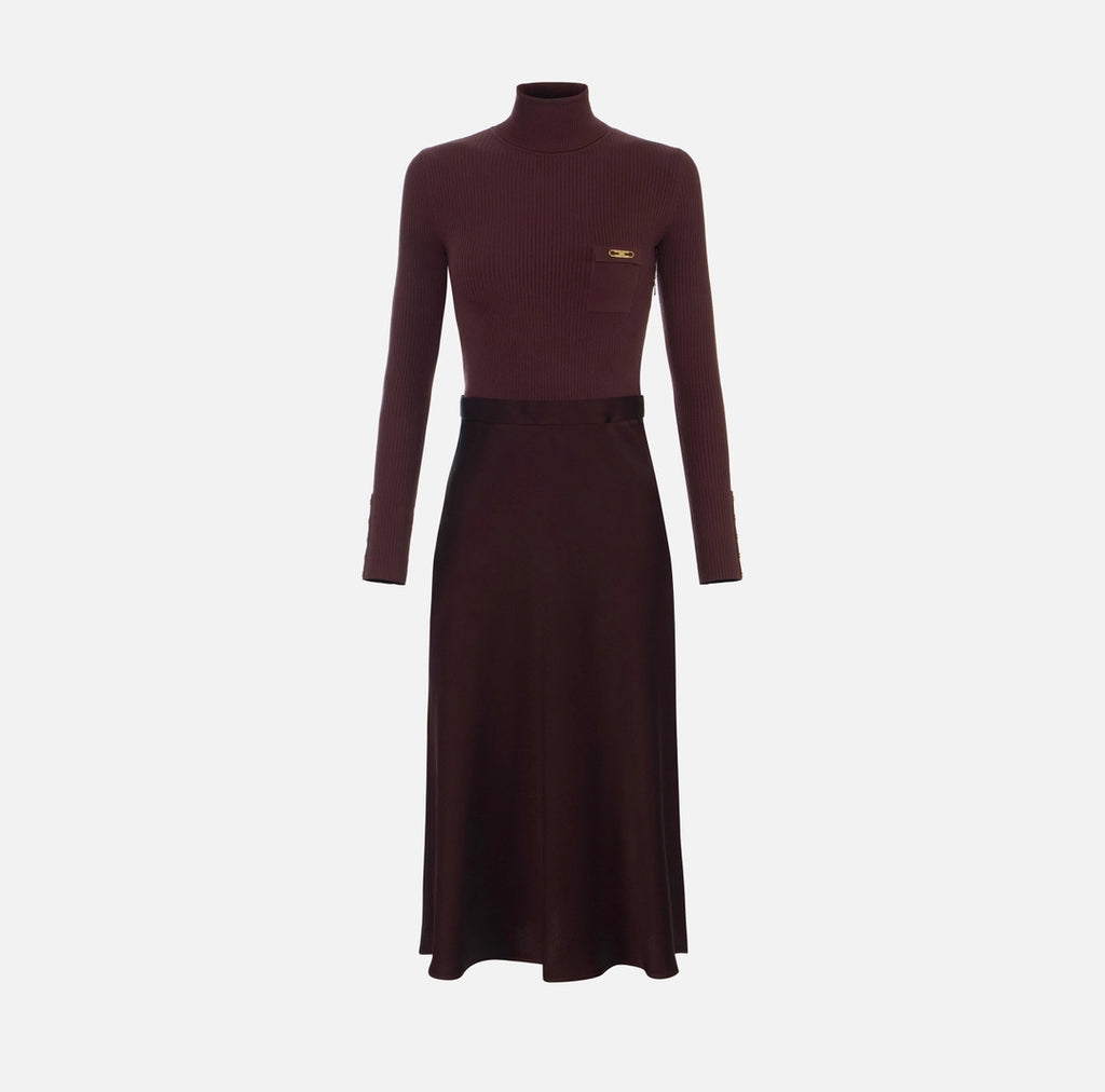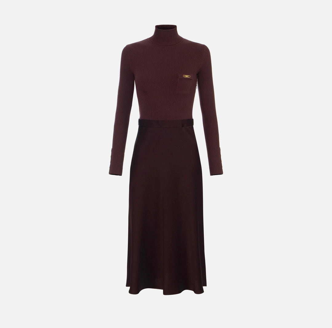 ELISABETTA FRANCHI - abito in maglia con gonna in raso