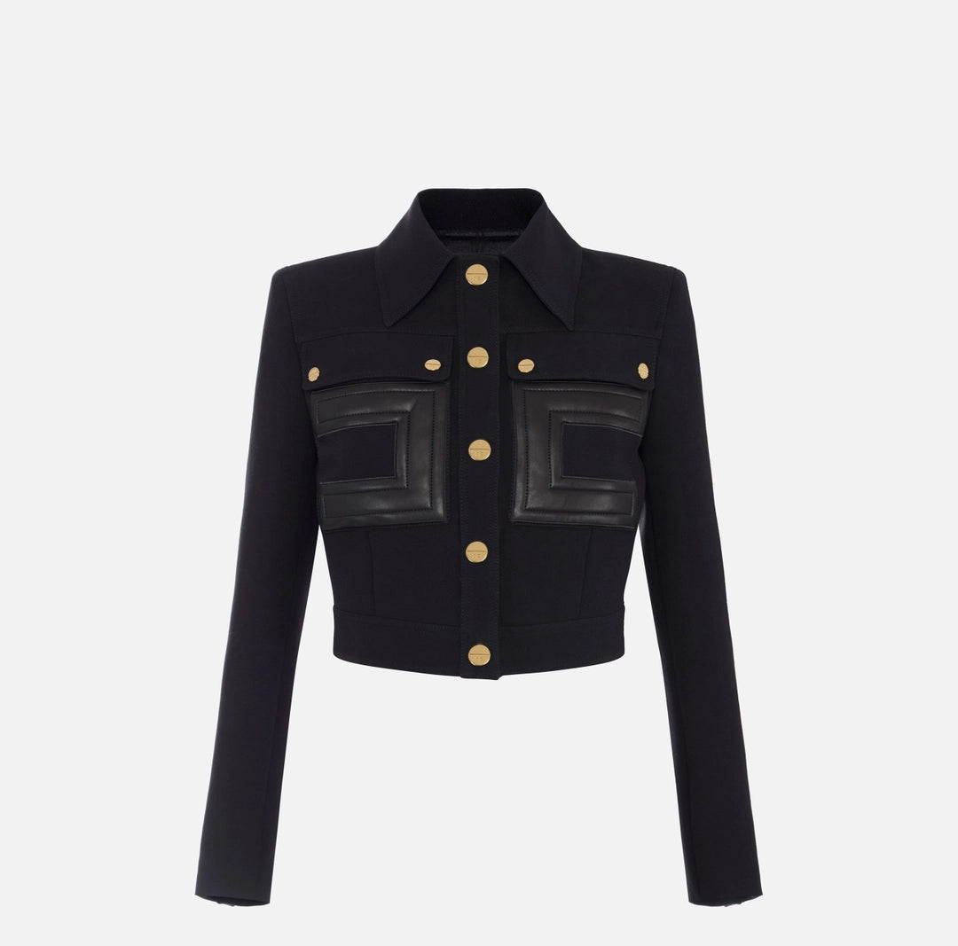 ELISABETTA FRANCHI - giacca in doppio crepe con dettagli logo in ecopelle