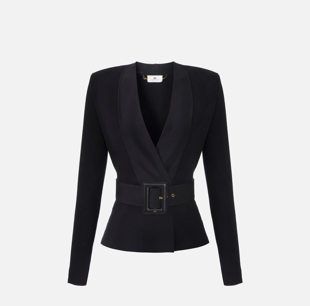 ELISABETTA FRANCHI - giacca in maglia con cintura
