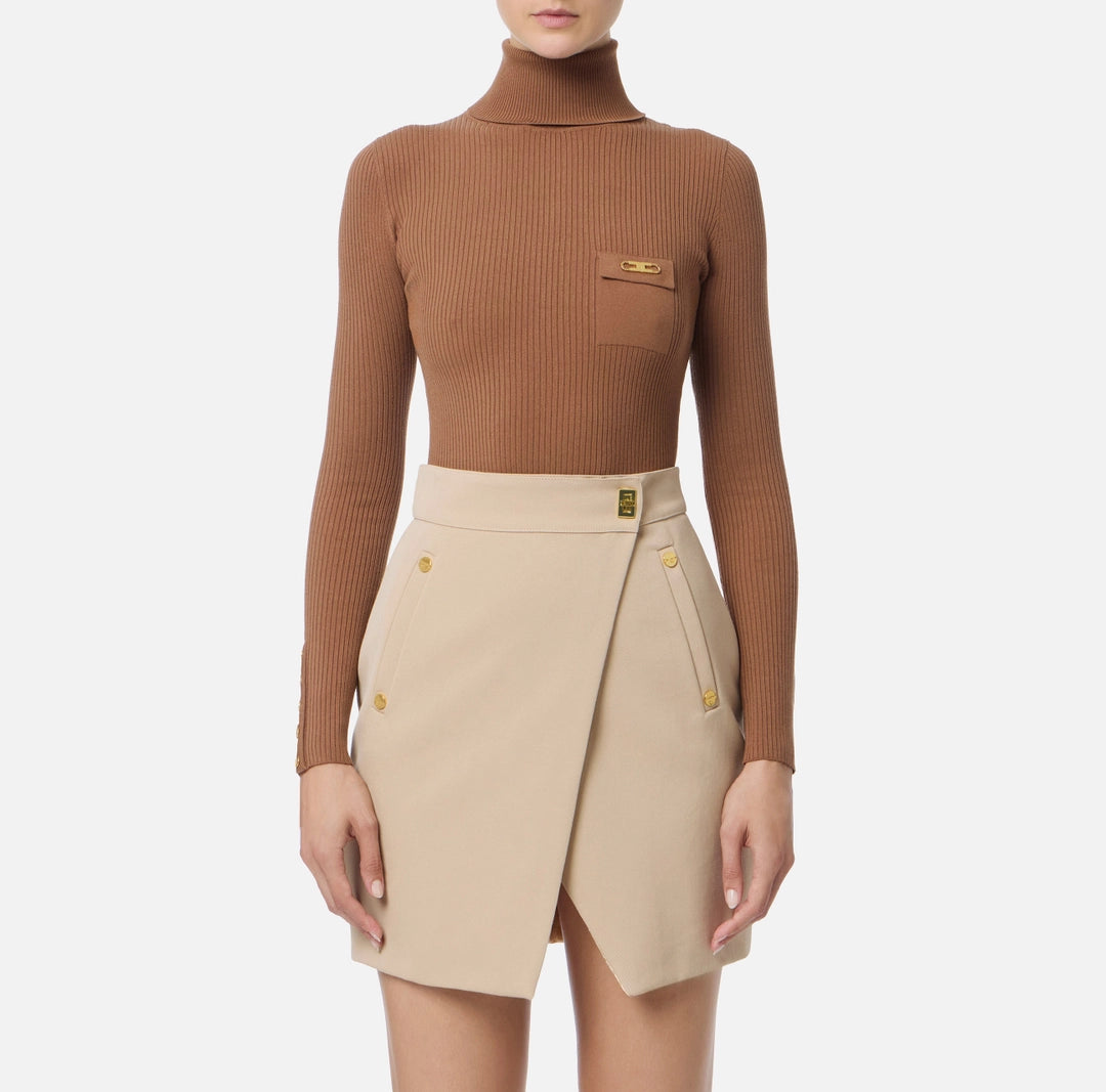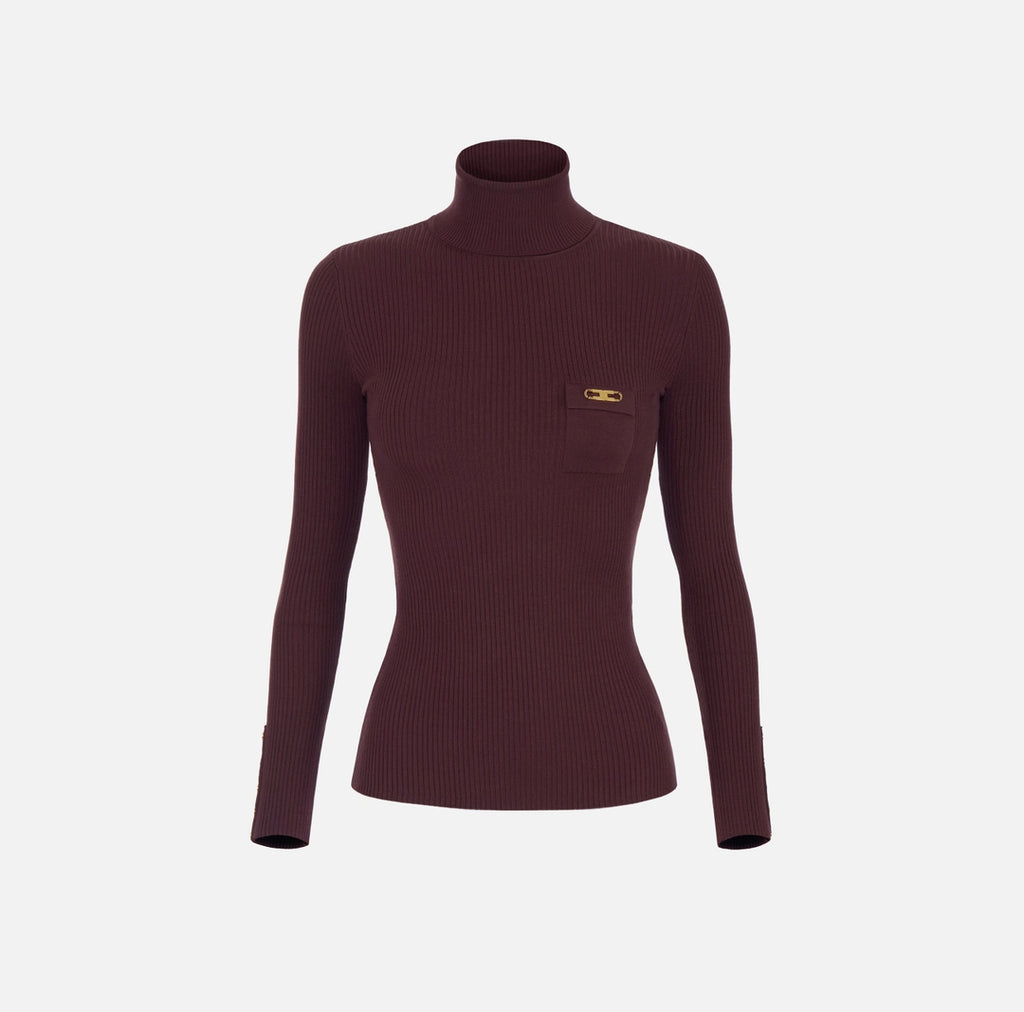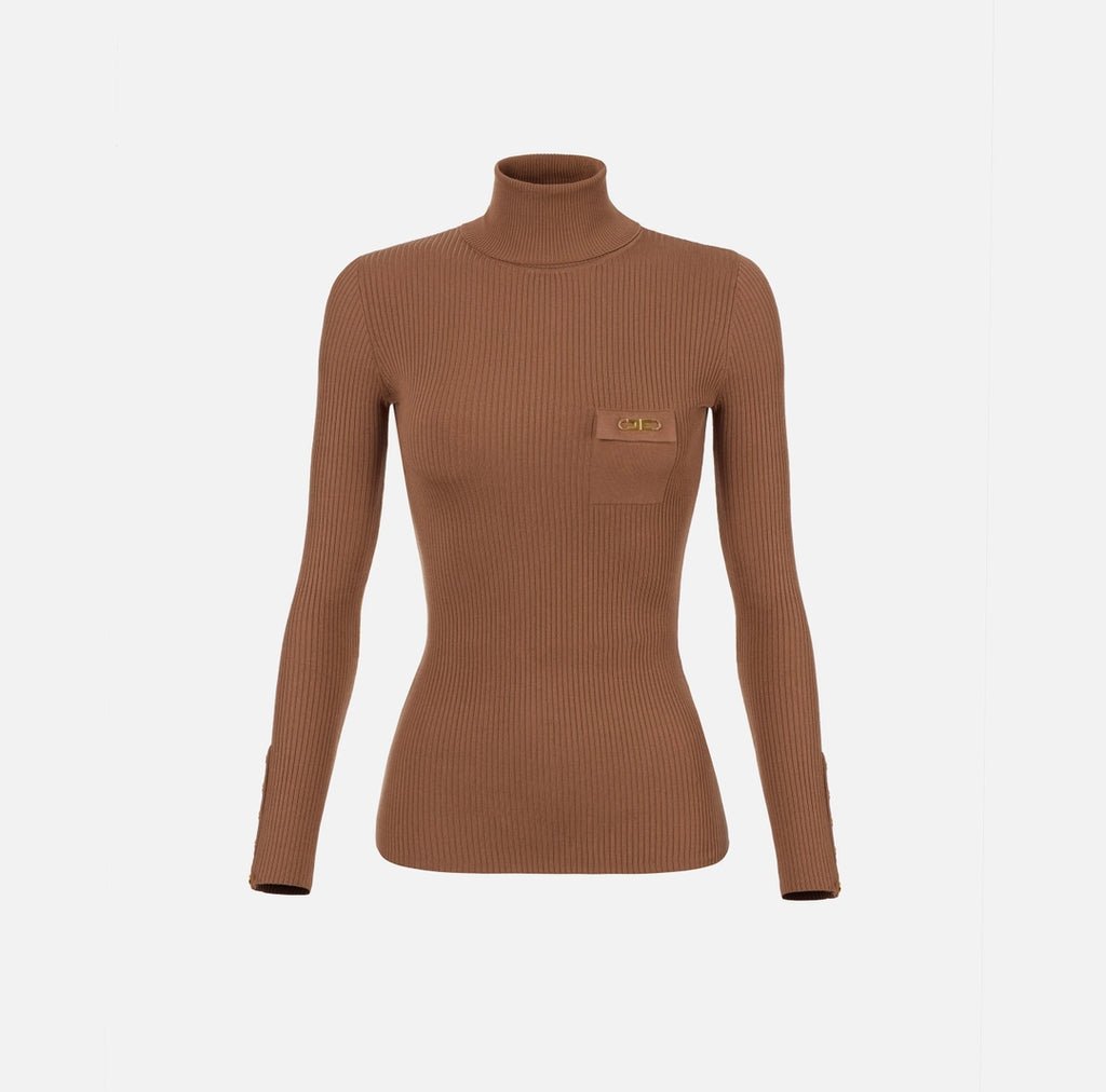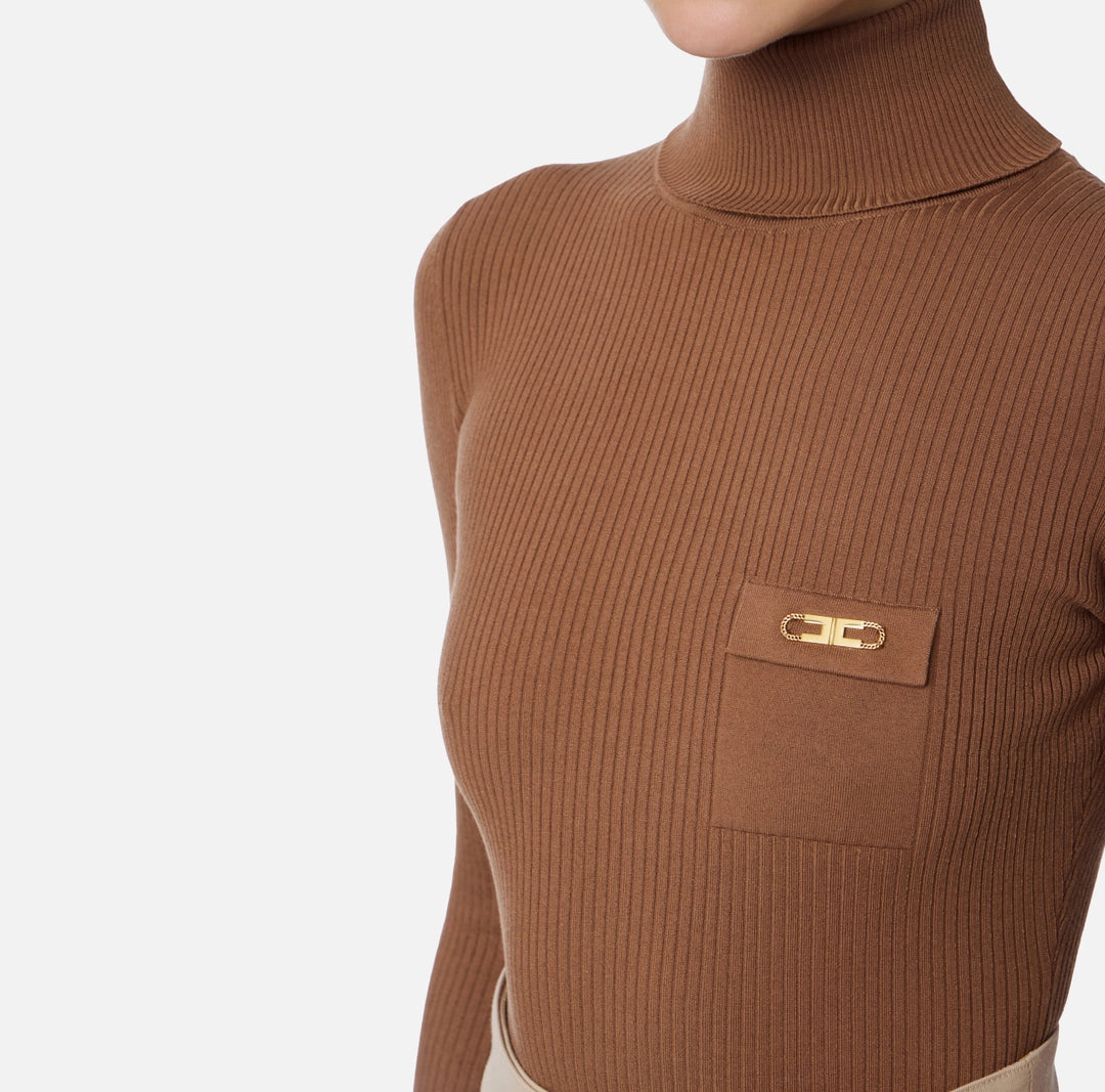 ELISABETTA FRANCHI - maglia dolcevita a costine con taschino